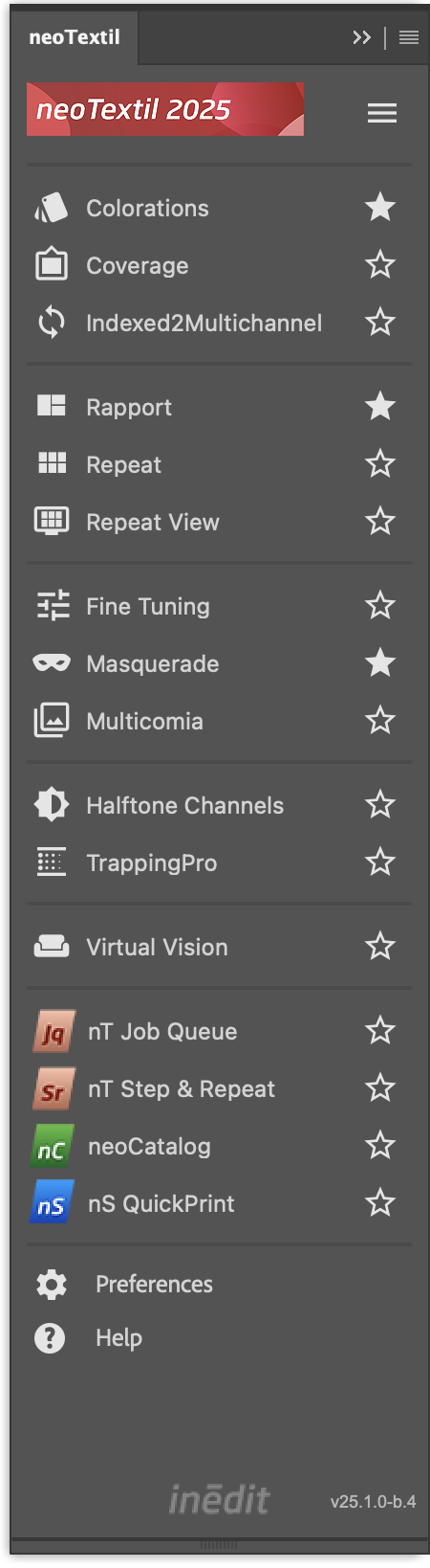 - neoTextil 9: In Photoshop you can open the panel from Plug-ins | neoTextil Panels | nT neoTextil Panel