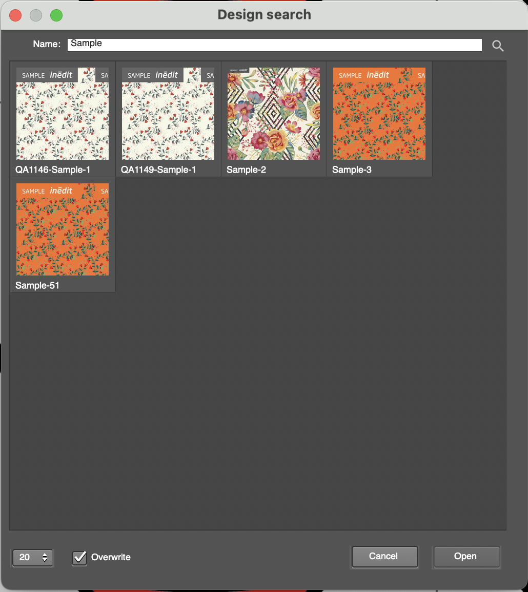 b. In the dialog, specify the number of designs to load (10–50) and decide whether to overwrite existing files on your local disk.