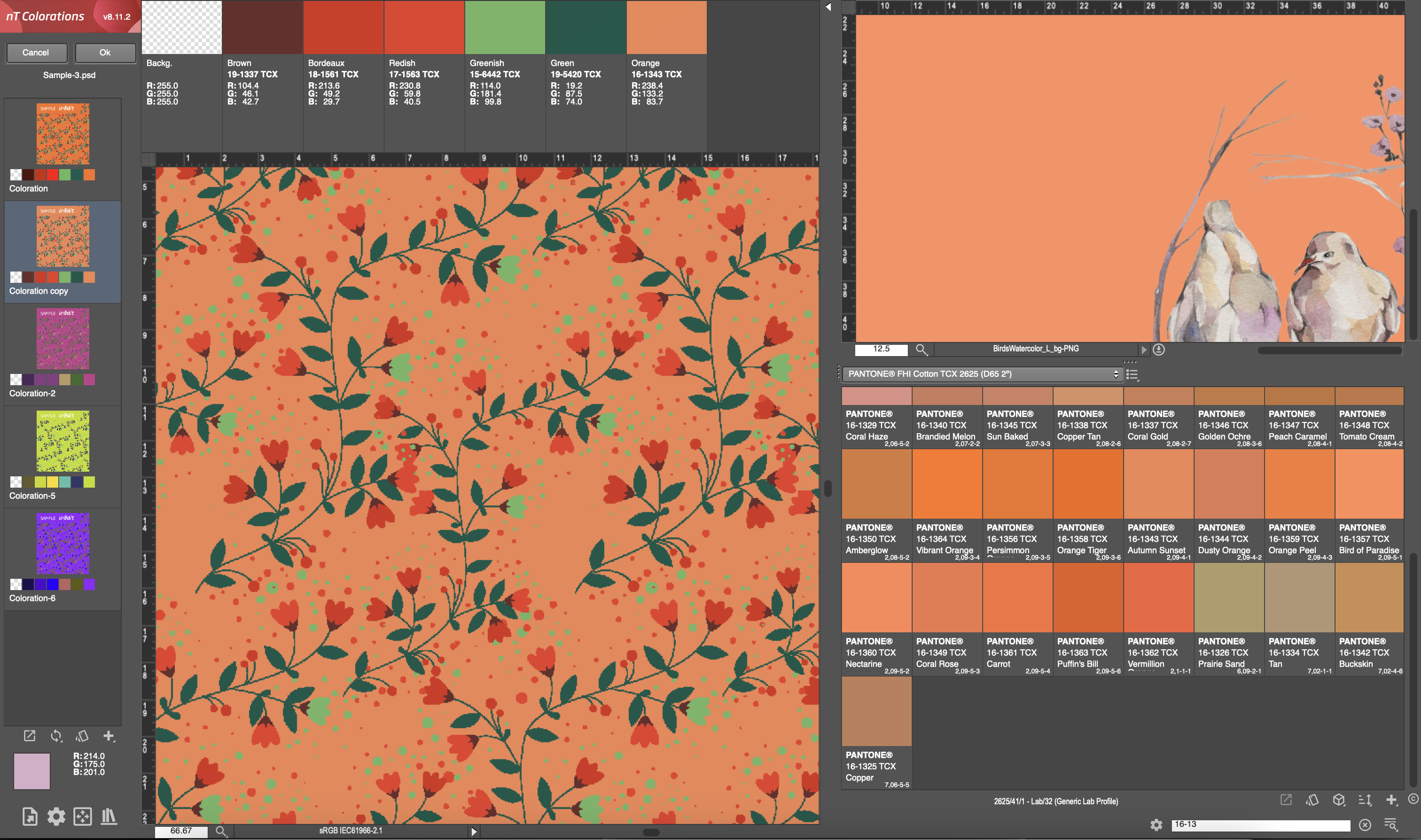 nT Colorations offers layout of color patches in the image reference panel.