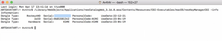 - neoKeyManagerCGI is used to verify the dongle information. Navigate to the folder path in macOS or Windows /Library/WebObjects/Applications/neoCatalogWeb.woa/Contents/Resources/CGI-Executables