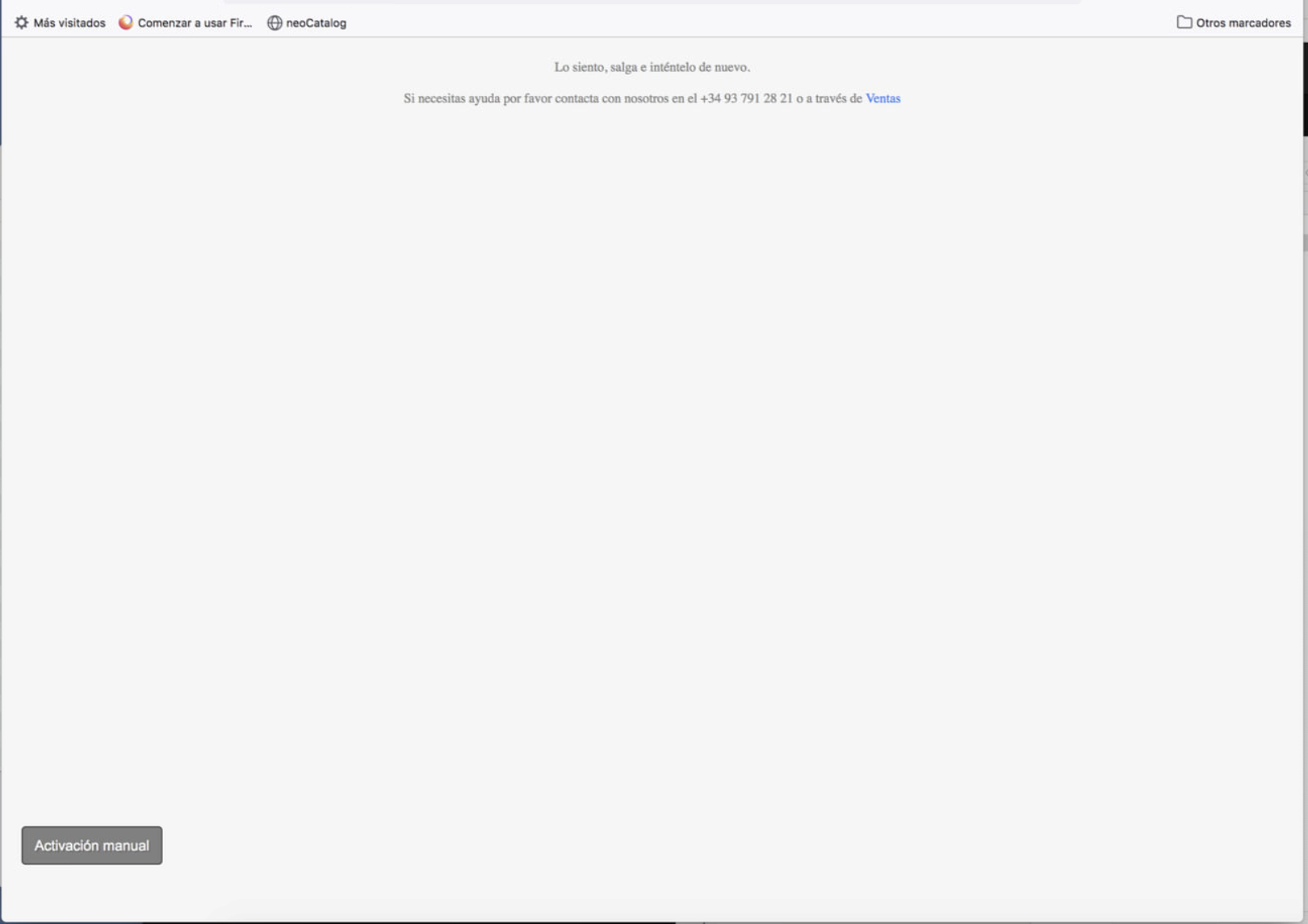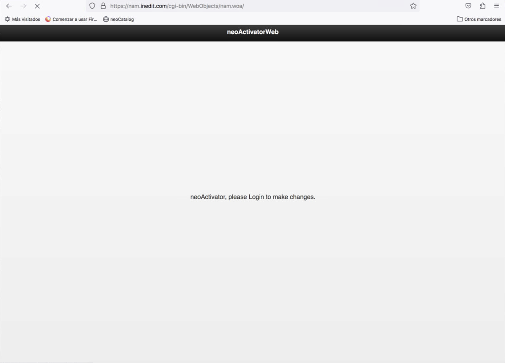 After restarting neoCatalog and logging in, then I don't see the Web Activator but instead a gray page. This is caused by permission problems (see Problem 2) or a lack of network settings.