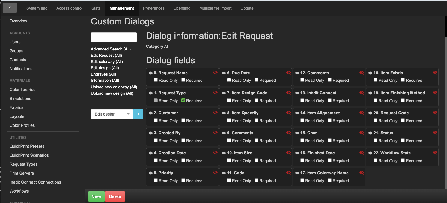 - Se añadió una opción de preferencias avanzadas para incluir el tipo de tela tanto en el cuadro de diálogo de impresión como en la exportación del diseño de impresión.