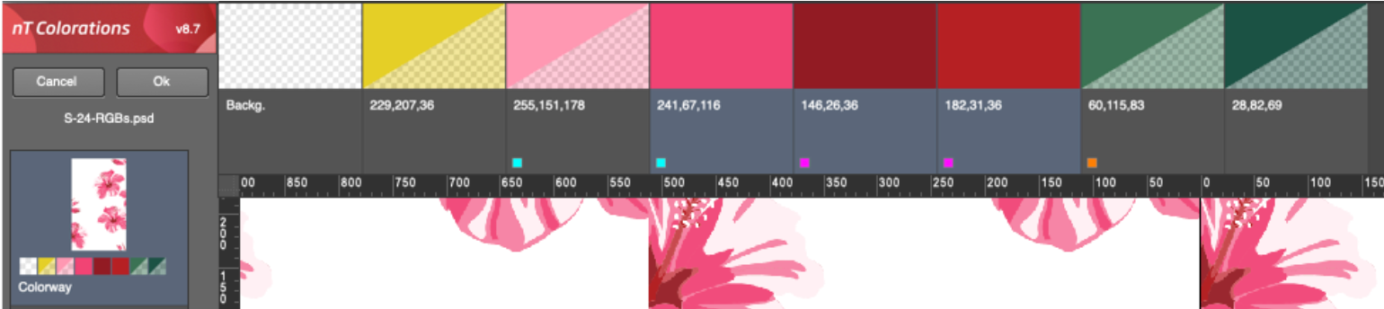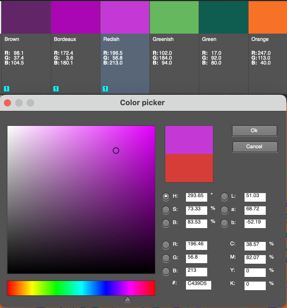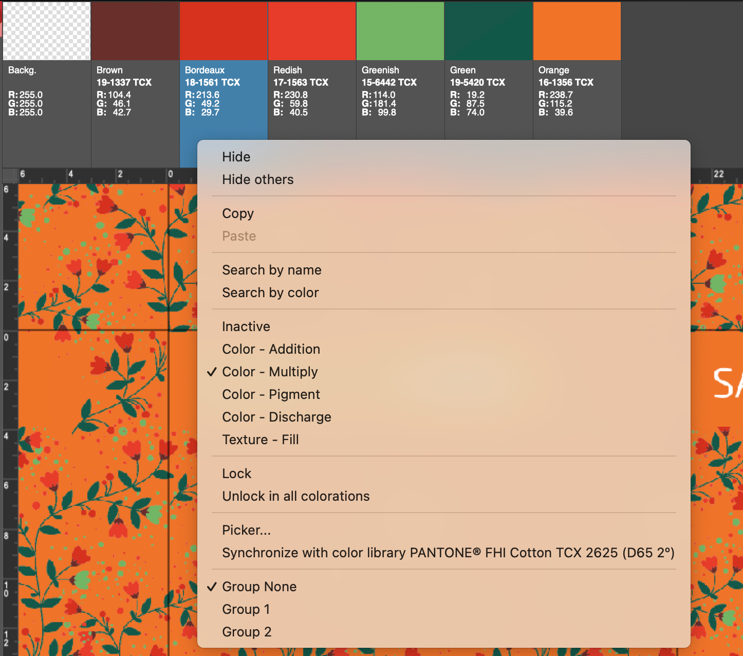 在窗口顶部,您可以看到颜色通道,其中包含颜色、颜色名称、色库、通道组、颜色组件等,具体取决于您已加载的布局样式。