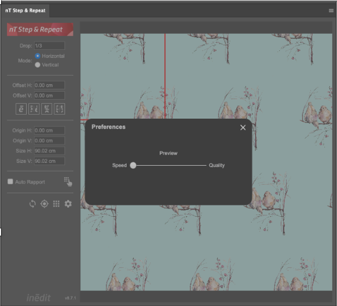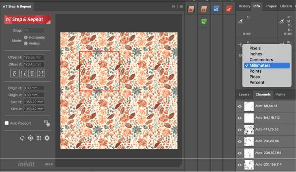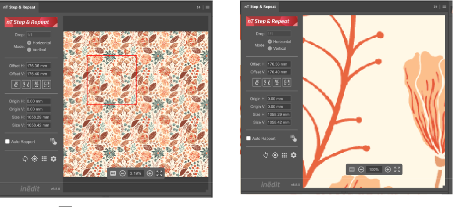 neoTextil Step & Repeat 是一个 Adobe® Photoshop® 面板,提供了多种用于创建设计图重复拼接的工具。您可以使用固定或图形偏移选项,无论是垂直还是水平方向,并且无论图像大小如何,都能生成无缝的设计图重复拼接。